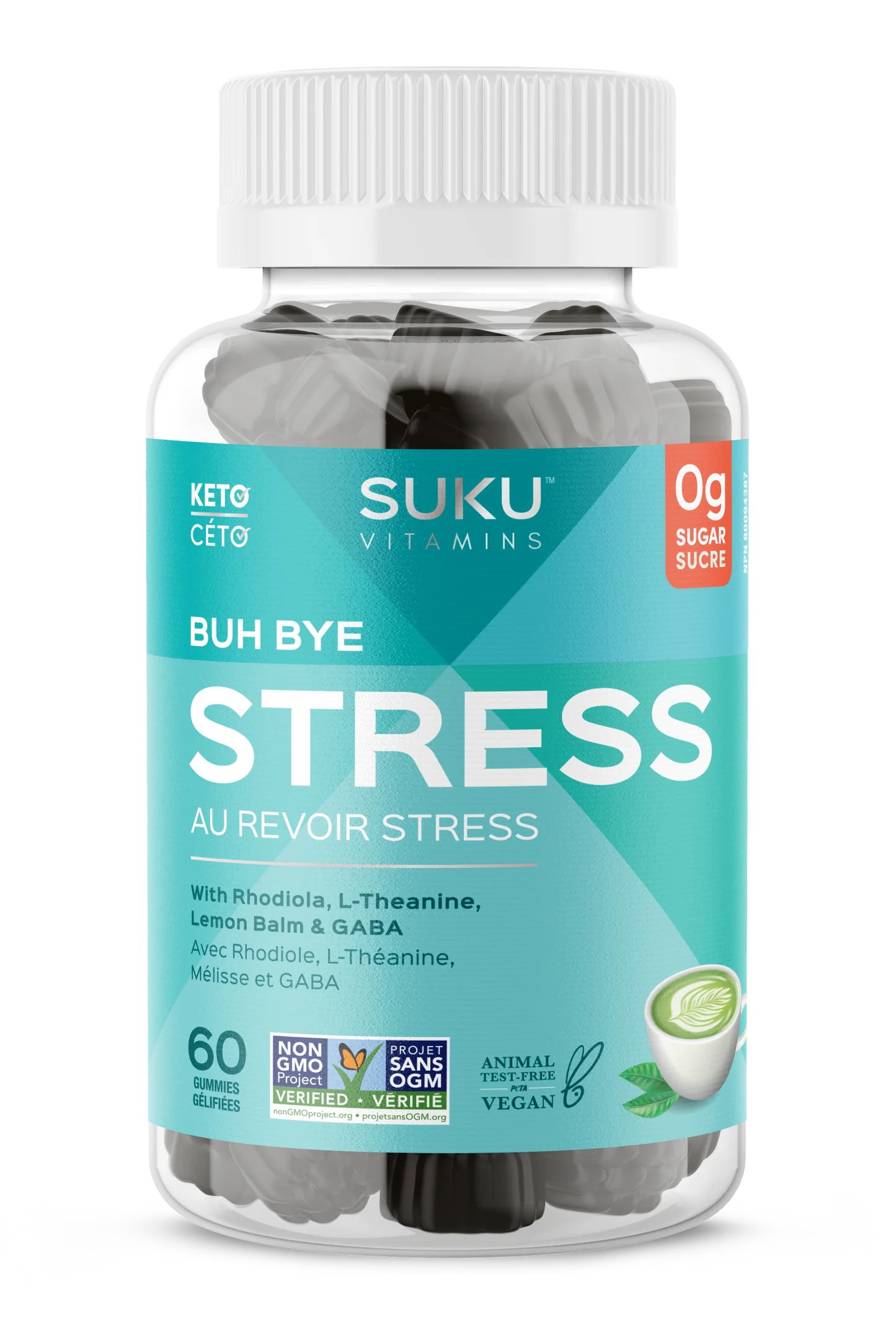 Calmez-vous. Buh Bye Stress est votre partenaire idéal lorsqu'il s'agit d'éliminer les mauvaises vibrations. Ces gélifiés sans sucre associent la rhodiole, la mélisse, la l-théanine et le GABA pour favoriser temporairement la relaxation et soulager les symptômes du stress tels que la fatigue mentale et les sensations de faiblesse, tout en soutenant les fonctions cognitives.