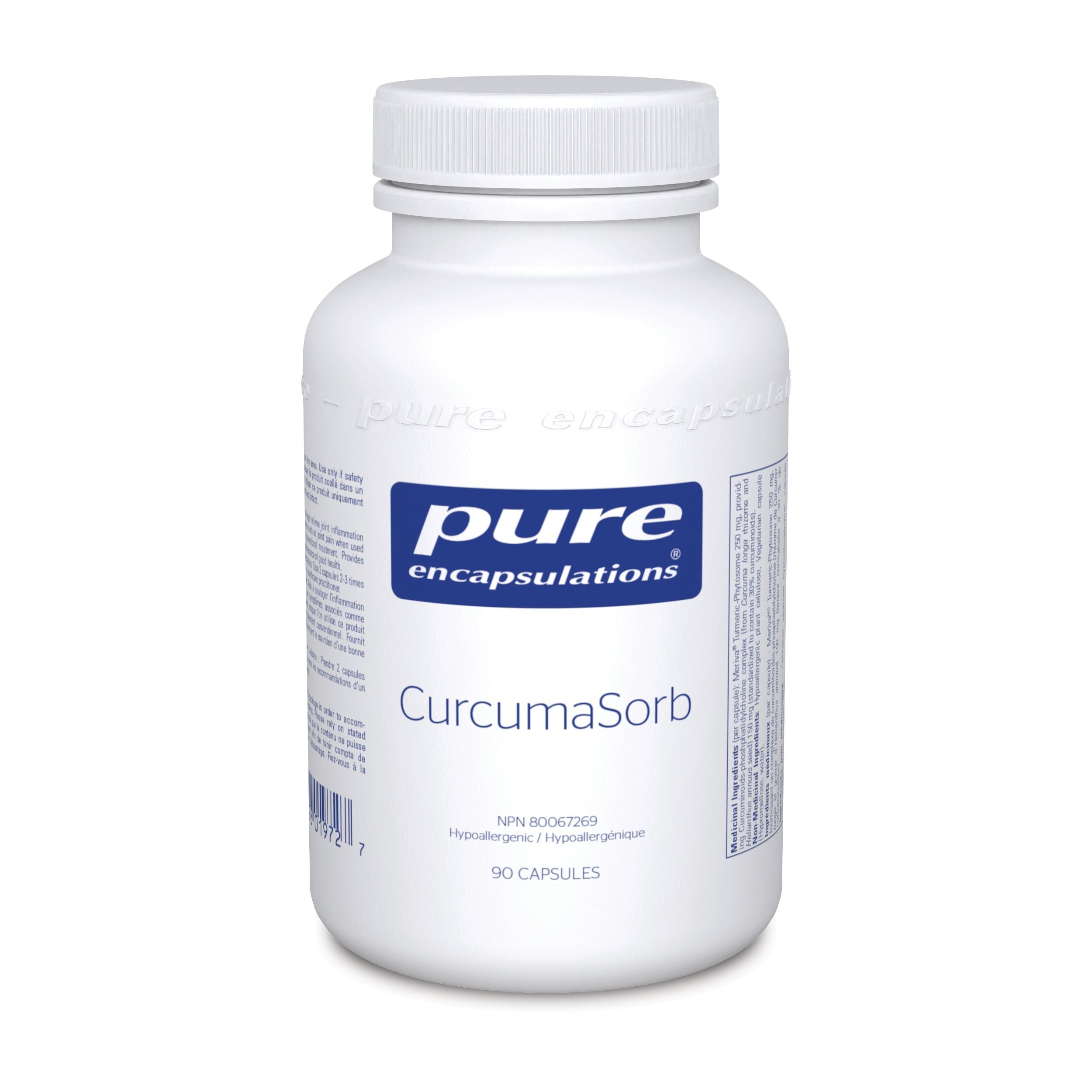 CurcumaSorb contient le complexe breveté de curcumine-phosphatidylcholine Meriva® pour une assimilation et une biodisponibilité améliorées. La technologie exclusive de phytosome contient de la curcumine et de la phosphatidylcholine dans un rapport 1:2, favorisant la résistance à la dégradation dans le tube digestif et une assimilation efficace à travers les membranes. Cela entraîne des pics de concentration plasmatique plus élevés et une plus grande zone sous les courbes de concentration en fonction du temps. Dans une étude pharmacocinétique animale portant sur une seule dose, les niveaux plasmatiques de curcumine ont été 20 fois plus élevés avec Meriva® qu'avec la curcumine standard. Une étude pharmacocinétique préliminaire réalisée sur des sujets humains a démontré que l'augmentation de la curcumine plasmatique obtenue après l'ingestion de 450 mg de Meriva® était similaire aux valeurs obtenues après l'ingestion de 4 000 mg d'extrait de curcumine standard. L'efficacité d'une faible dose a été démontrée lors par un essai clinique de trois mois au cours duquel l'ingestion quotidienne de 200 mg de curcuminoïdes provenant de Meriva® a aidé à réduire l'inflammation articulaire et a significativement amélioré le confort, la mobilité et la qualité de vie lorsque jumelée à un traitement traditionnel.