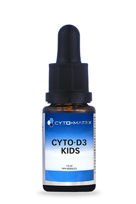 Cyto-D3 Kids est conçu pour aider à prévenir la carence en vitamine D3. Chaque Cyto-D3 Kids fournit 15 ml de liquide stable de vitamine D3, avec une concentration de 400 UI de vitamine D3 par goutte. Cyto-D3 Kids fournit de la vitamine D3 dans une base d'huile de triglycérides à chaîne moyenne provenant de l'huile de noix de coco pour favoriser une absorption et une biodisponibilité optimales.