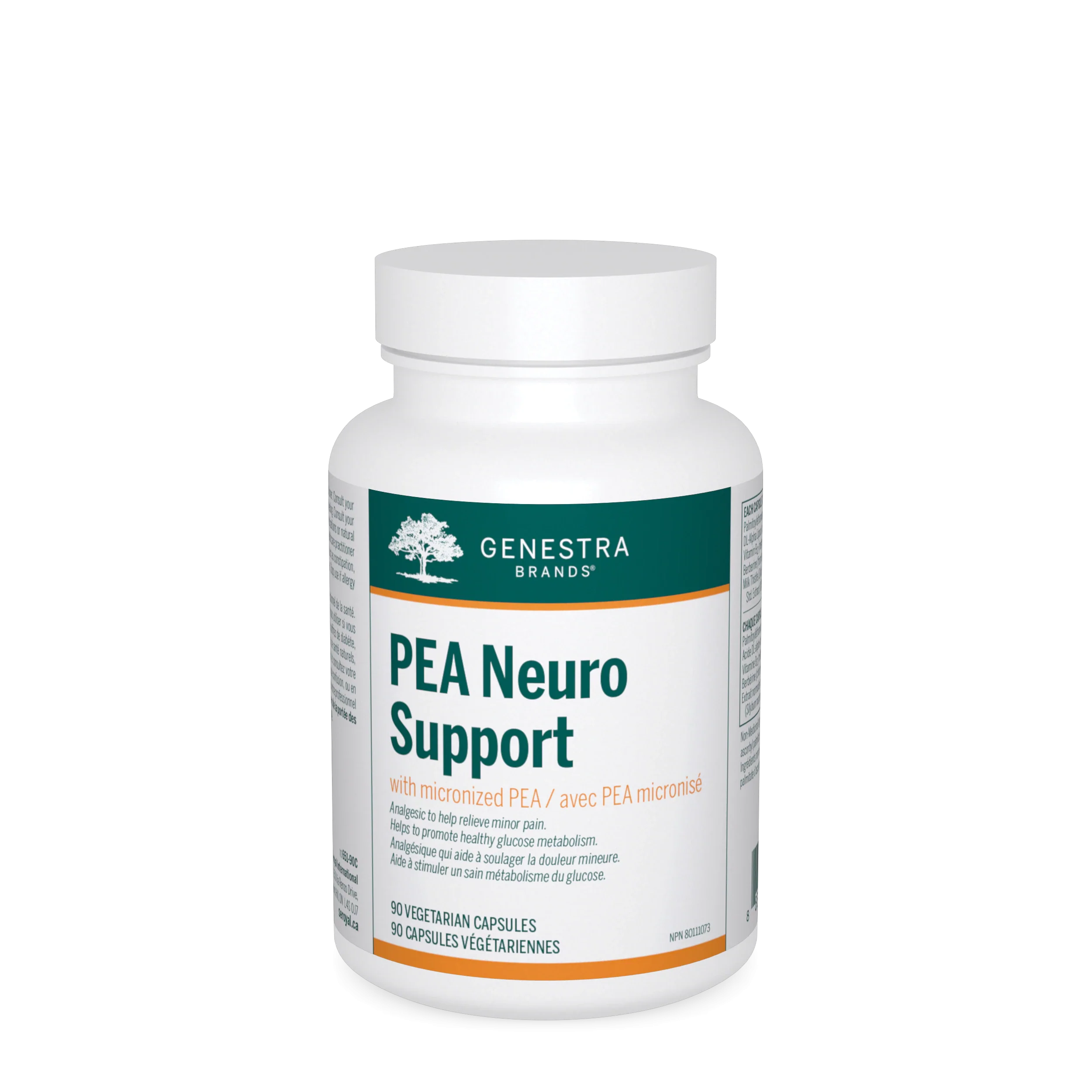 PEA Neuro Support contient une combinaison synergique de palmitoyléthanolamide (PEA) micronisé et d’acide DL-alpha-lipoïque à laquelle on a ajouté de la vitamine B12, de la berbérine et un extrait de graine de chardon-Marie et qui soulage la douleur neuropathique mineure/chronique tout en procurant un soutien antioxydant. Le PEA est une molécule unique qui a été découverte il y a plus de 80 ans et qui a été soumise à des études visant à évaluer ses nombreux mécanismes d’action, notamment sa capacité de réduire de façon marquée l’intensité de la douleur. L’acide alpha-lipoïque est un puissant antioxydant qui a des effets bénéfiques sur la régulation du métabolisme du glucose; il a aussi fait l’objet d’études cliniques visant à évaluer son rôle dans la gestion de la douleur. Le produit PEA Neuro Support de Genestra BrandsMD est une formule novatrice qui offre une stratégie sûre et efficace pour réduire la douleur et améliorer le métabolisme du glucose tout en procurant un soutien antioxydant.
