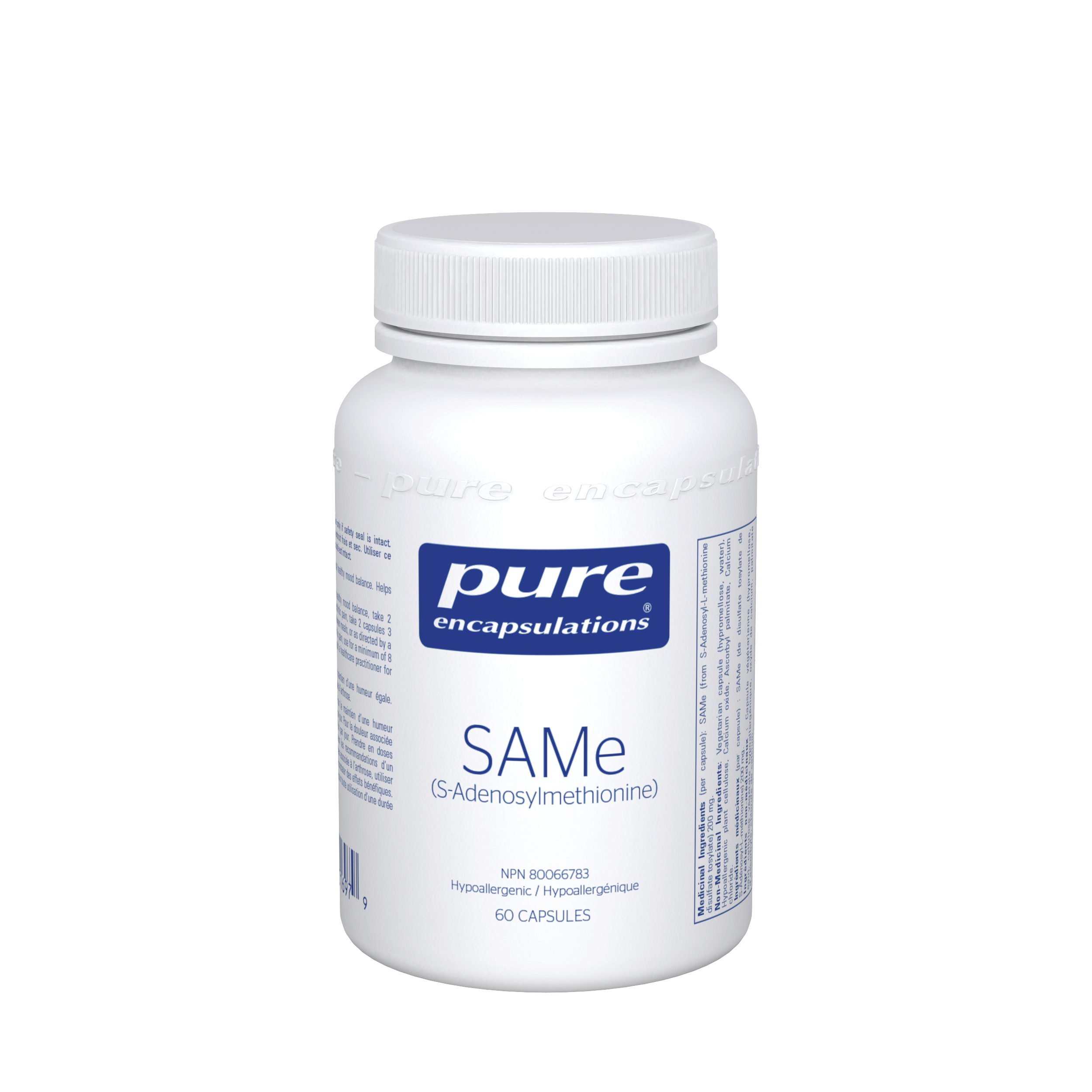 La SAMe (S-Adenosylmethionine) est un métabolite présent dans toutes les cellules vivantes. Elle est un donneur de groupes méthyle dans plus de 100 réactions différentes et contribue à la synthèse, à l'activation et/ou au métabolisme d'hormones, de neurotransmetteurs, d'acides nucléiques, de phospholipides et de protéines. Les groupes méthyle agissent comme un signal dans le corps, régulant l'expression génétique et la fonction cellulaire. Comme l'ont démontré plus de 40 études cliniques, la SAMe favorise également l'équilibre de l'humeur. Dans une méta-analyse rassemblant les résultats obtenus lors de 25 essais cliniques contrôlés et sur 791 sujets, la SAMe a eu un effet positif statistiquement significatif sur l'humeur, probablement en raison de son soutien à la synthèse et à l'activité de la monoamine (un neurotransmetteur), y compris la dopamine et la sérotonine. Elle favorise également un sain renouvellement des protéines et maintien une saine méthylation des phospholipides pour soutenir la production de phosphatidylcholine ainsi que l'intégrité et la fluidité des membranes cellulaires. Des études suggèrent qu'elle soutient aussi le confort et la flexibilité des articulations chez les personnes souffrant d'arthrose. Dans une méta-analyse rassemblant les résultats de 11 études, la SAMe a démontré un soutien statistiquement significatif des fonctions articulaires. On croit qu'elle soulage les douleurs dues à l'arthrose en soutenant la synthèse des protéoglycanes et en aidant à stabiliser et à protéger les protéoglycanes.