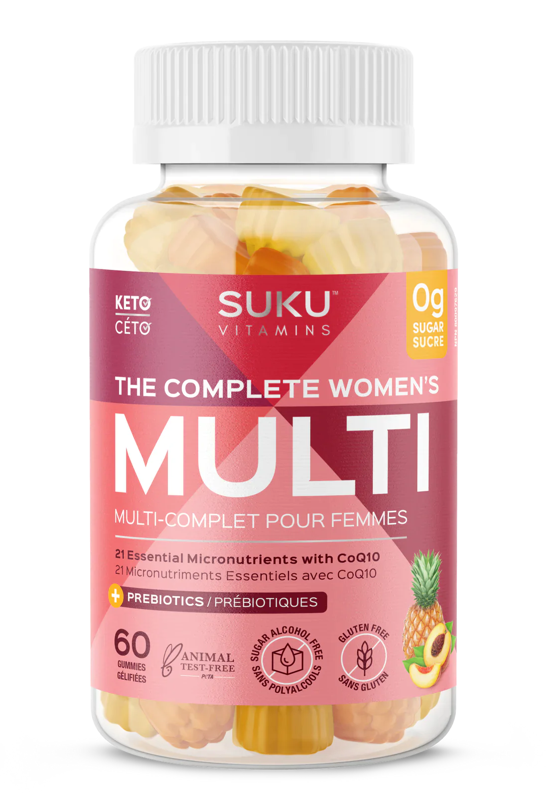 Conçu exclusivement pour les femmes, The Complete Women's Multi est votre compagnon quotidien qui fournit 21 micro-nutriments essentiels, dont la CoQ10 et la vitamine K2, pour vous garder en bonne santé, pleine d'énergie et prête à affronter tout ce que la vie vous réserve. Nous avons réussi à mettre tous ces bienfaits dans deux délicieuses gélifiés sans sucre, et chaque portion contient également trois grammes de fibres prébiotiques solubles.